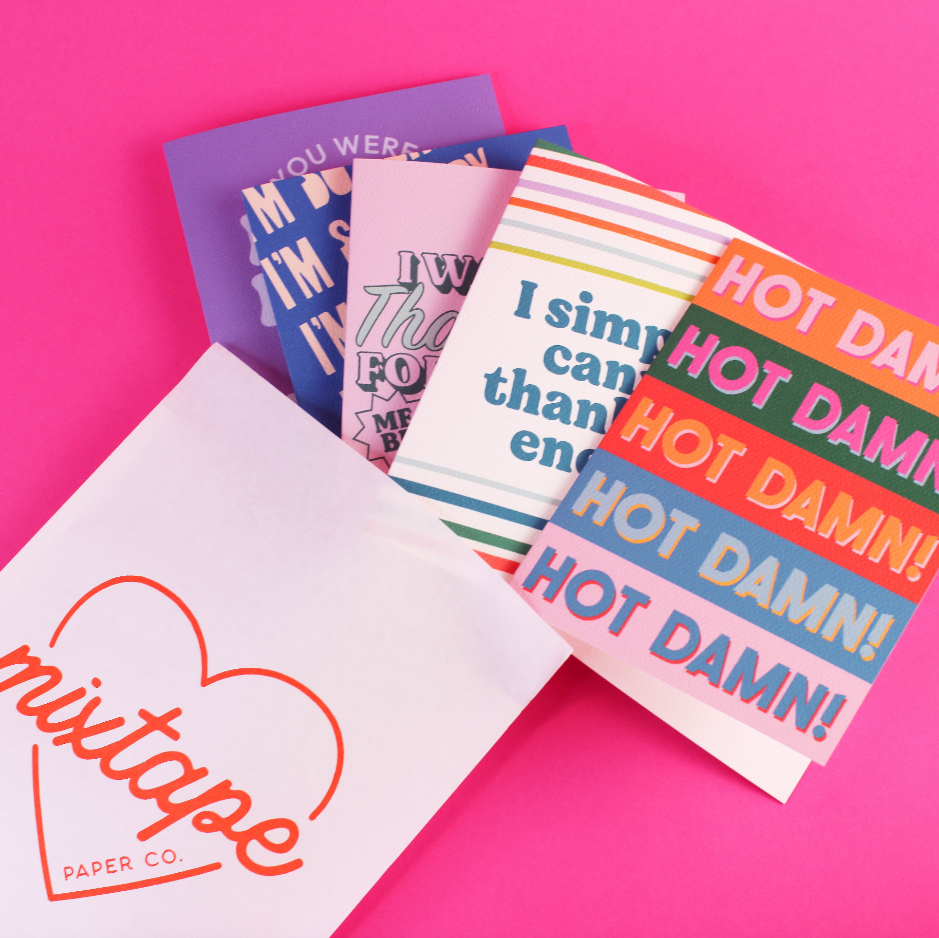 We create cards + gifts that are inspired by real life relationships, music and bold design. Our hope is that we can help you express your love in fun + meaningful ways.